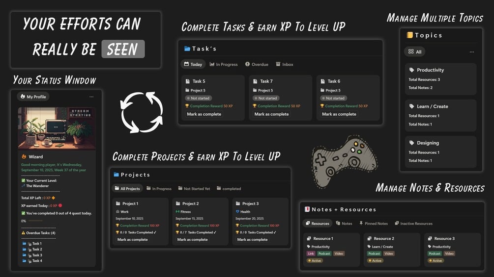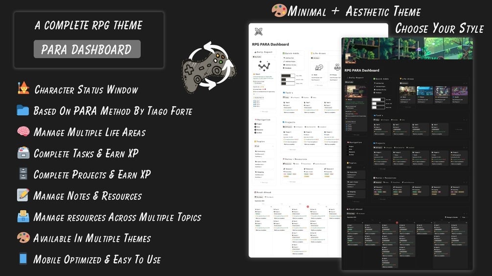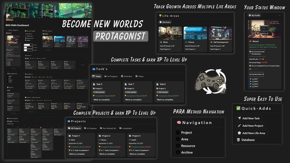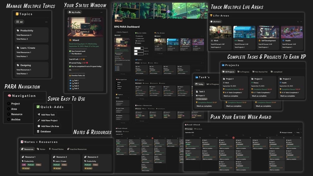 Yes! It’s built around the PARA method + RPG mechanics like XP, quests & levels. - What can I track inside this?