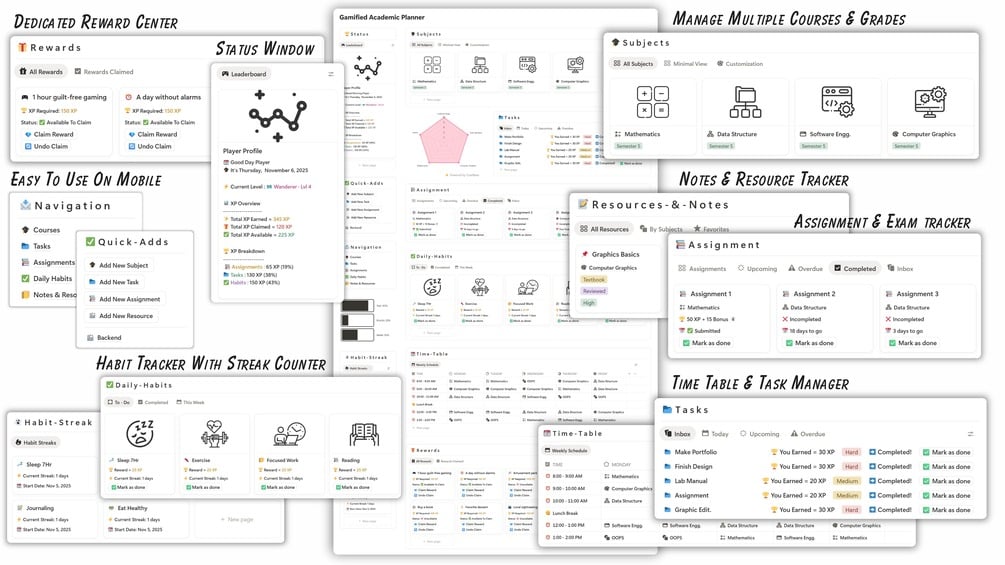 ⚔️ Academic XP System (Courses, Tasks & Habits)
